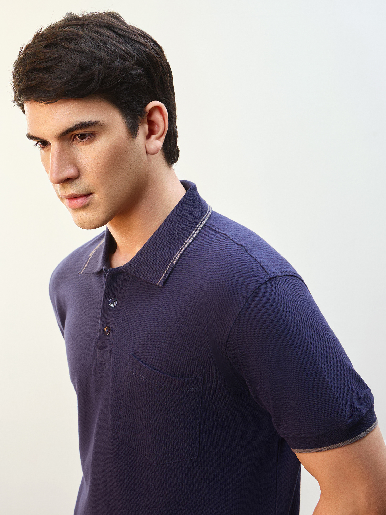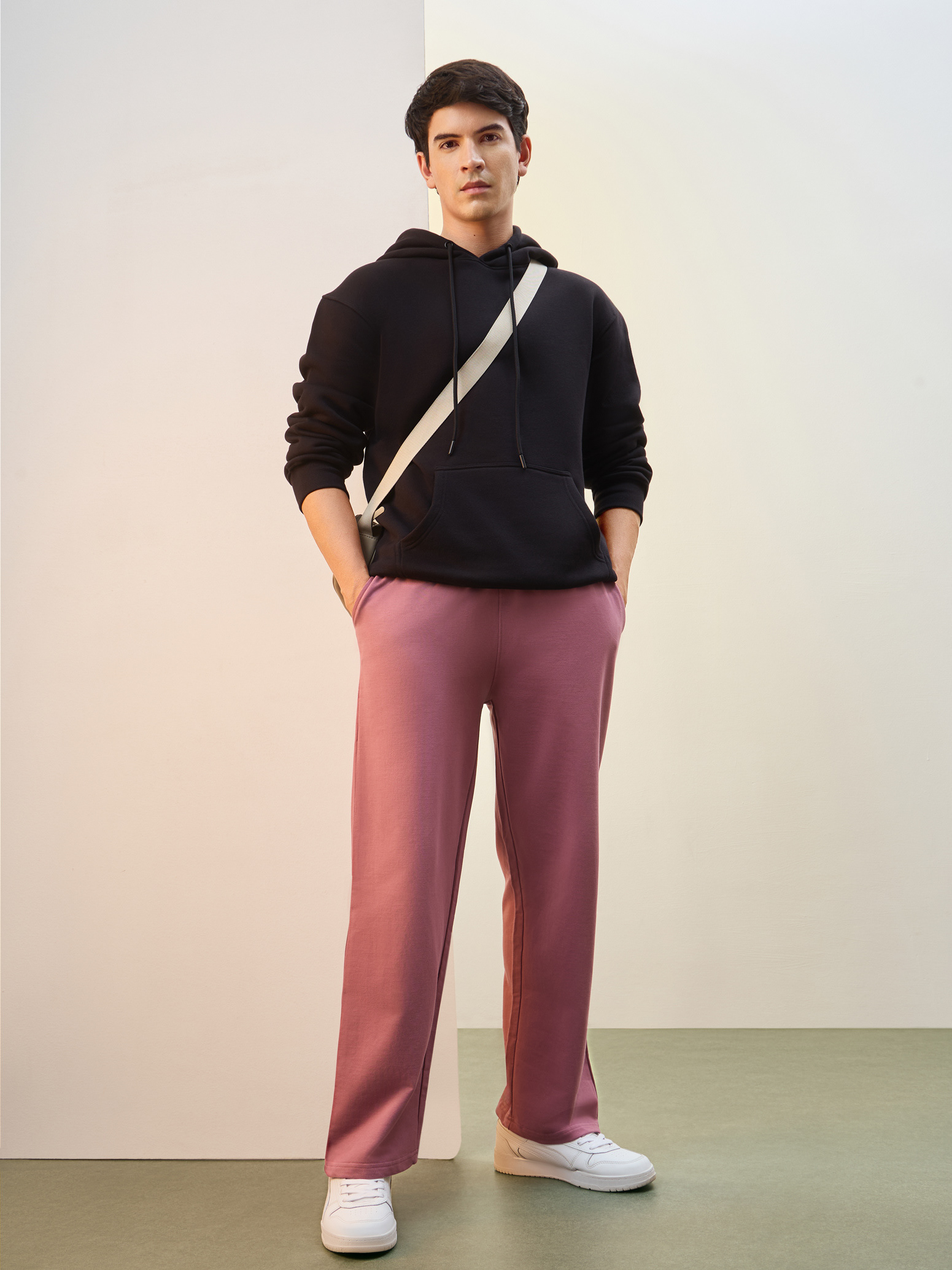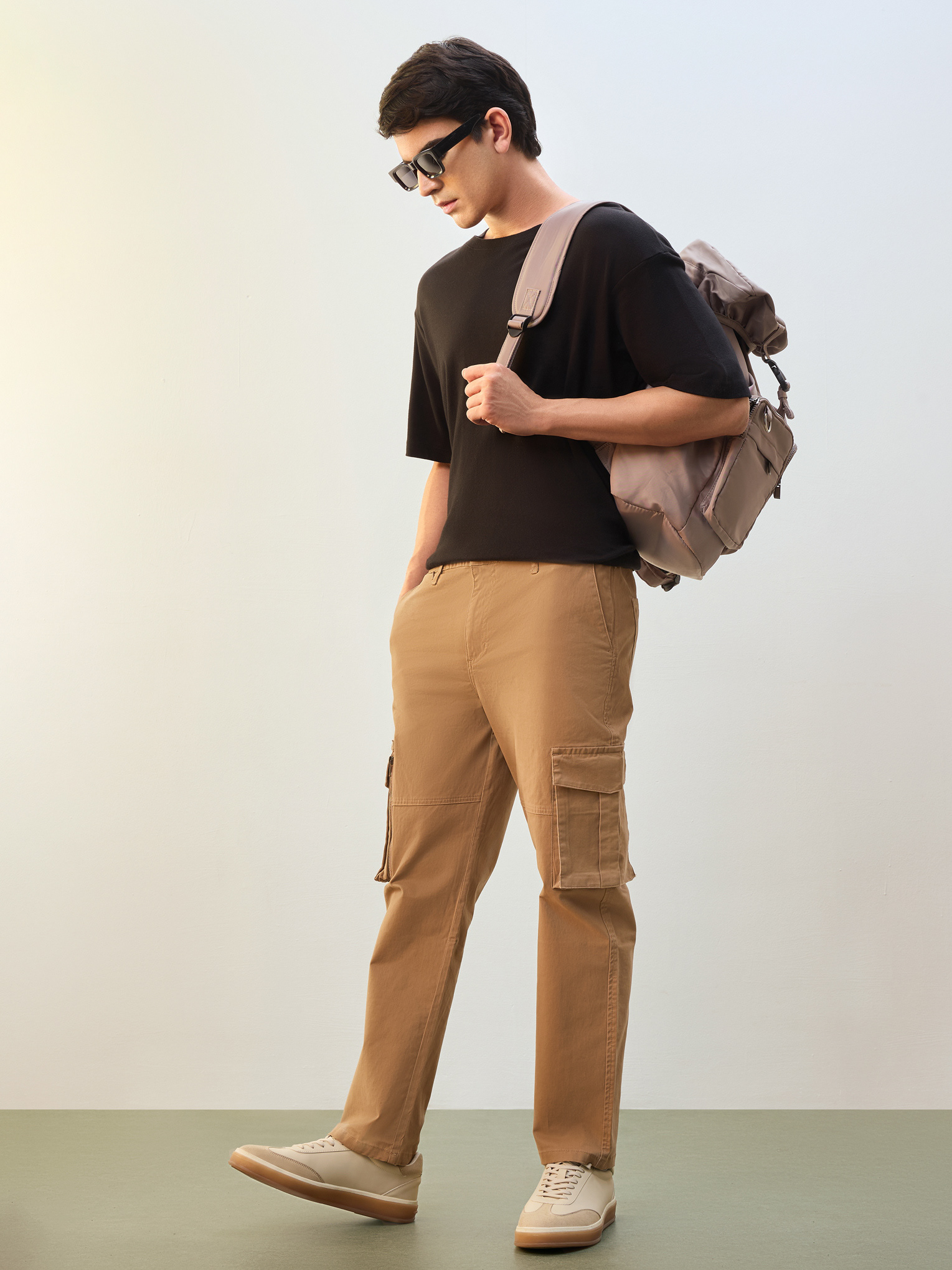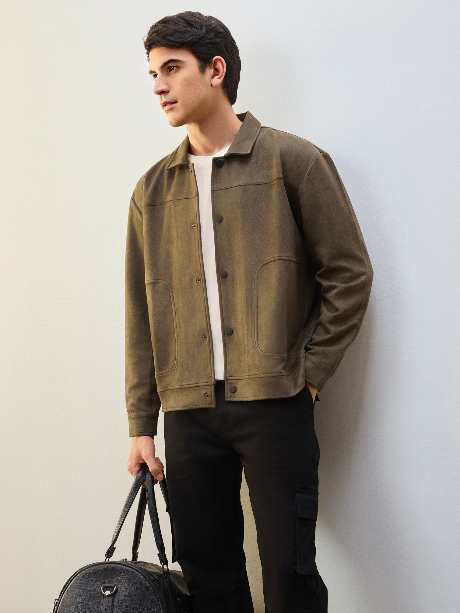 Nobero Men’s Travel Collection: A professional fashion campaign shoot replicating a luxury airport lounge. High-quality e-commerce imagery focusing on the "airport look" trend and functional travel apparel.